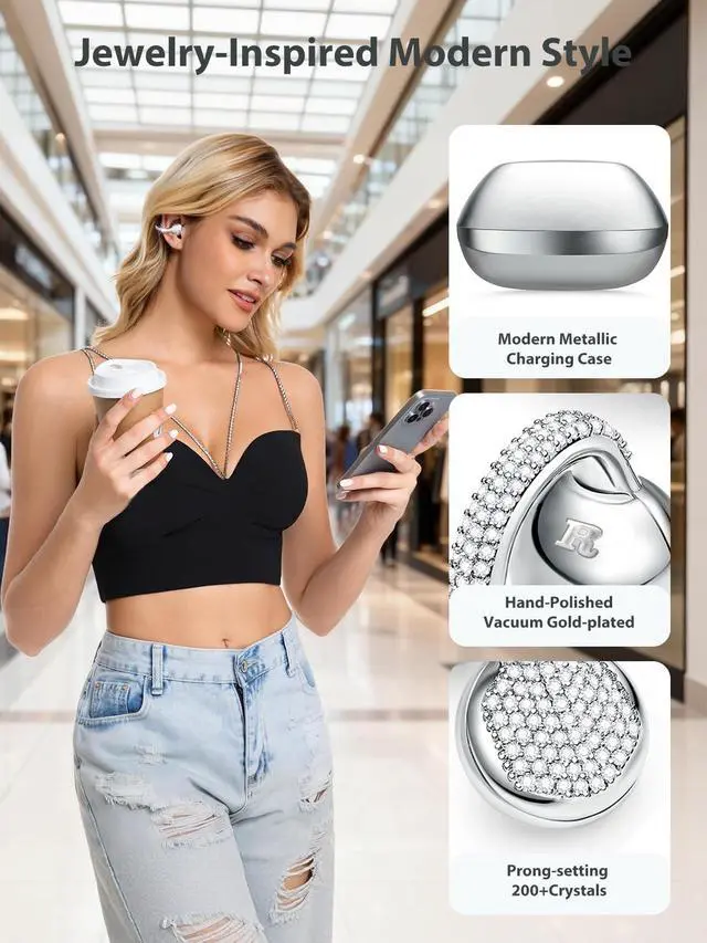 Women: These open-ear clip headphones are crafted with lightweight metal and hand-inlaid crystal details, blending fine jewelry aesthetics with everyday audio. Ideal for shopping, commuting, casual walks, video calls, and content creation. If you value fashion, elegance, and a unique look, these earbuds are made for you. The metal frame is carefully balanced for lightweight comfort. Like wearing new jewelry or heels, a short adaptation period may be needed before it feels natural for all-day wear.