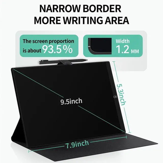 Maximized Writing Area: Designed with an ultra-narrow bezel, this writing tablet offers a larger active writing surface compared to most same-sized writing tablets on the market. The writing tablet comes with a protective case that better safeguards written content on the screen. This makes it effortless to use anywhereat home, in the office, or on the go. ^^
