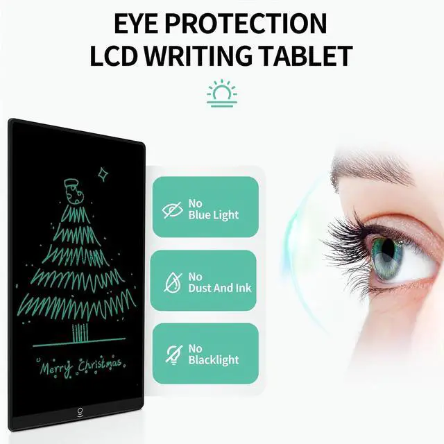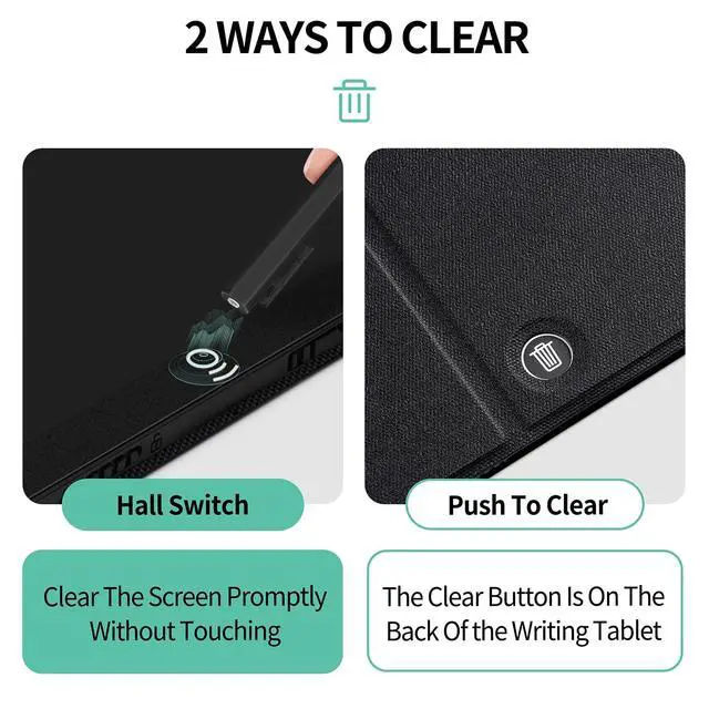 Paperless Writing Experience: This 9.5 -inch LCD writing tablet features pressure-sensitive technology that delivers sharp, scribble-free lines just like pen on paper. The writing tablet's screen is non-backlit, providing a comfortable, eye-friendly visual under bright lighting, perfect for long note-taking, sketching, or daily planning. ^^ Dual Safe-Erase Methods with Lock Function Erase with ease using either the magnetic stylus tip over the Hall switch icon (lock ON) or the physical button on the back. The writing tablet's lock screen key prevents accidental deletion, giving you full control over when to clear your workideal for preserving important notes or creative drawings. ^^ Slim & Portable with