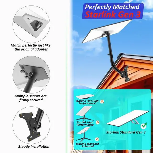 Fully Adjustable & Multi-Surface Compatible: Designed specifically for Starlink Gen 3, this bracket works on roofs, RVs, boats, eaves, and patios. Its 360 adjustability maximizes signal strength and connection stability in any location