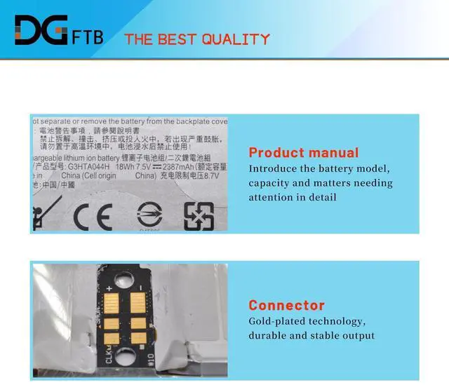 Capacity: 2387mhA/ 18.0W h ^^ Compatible P/NG3HTA044H G3HTA020H DAK822470K ^^ Compatible ModelsFor Microsoft Surface Book 1 CR7 13.5" CR7-00005 CR7-00007 Series ^^ DG QualityGrade A cells mitigate the risk of battery leakage and maximize output stability. Built-in circuit protection, enhances safety of usage and extends battery life ^^ DG TIPSFor the initial installation, please reinstall and check the interface fully connected, discharge the battery to 5%(not to 0%) and then charge to 95%, and cycle 3-4 times