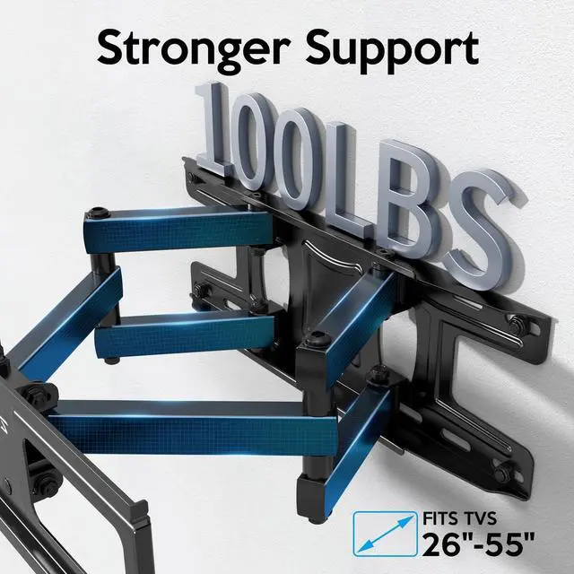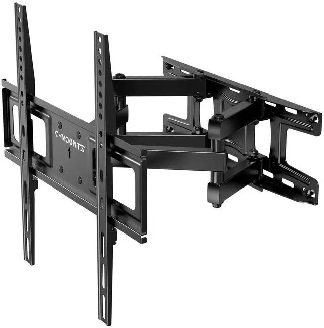 Universal TV Mounts - Full motion TV wall mount with articulating dual arms for most of 26-65" TVs up to 110 LBS, compatible with VESA (TV mounting hole pattern) from 100 x 100mm to 400 x 400mm, wood studs up to 16" apart. Please check the VESA pattern, weight, size of your TV before purchasing. ^^ Maximum Flexibility - TV wall mount bracket tilts +6/-12, swivels +/-45and level adjusts +/-3. TV mount can Pulls out to 14.7 inch and retracts back to 2.4 inch to saving you some valuable space. All these will make your TV flexibility and better view based on your seat in the room.