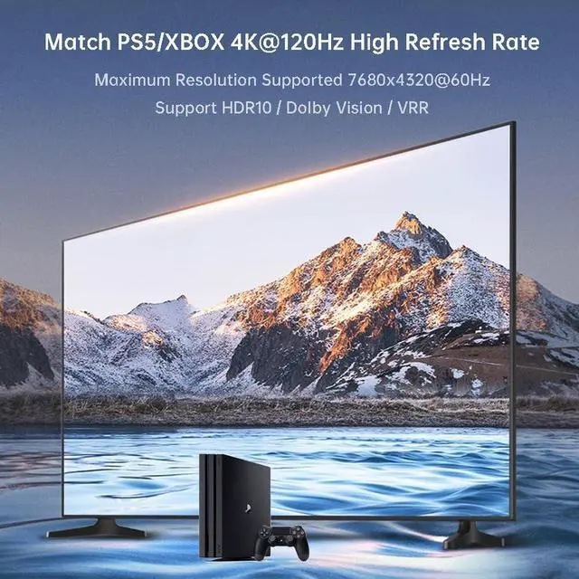 Note: The maximum performance output of SPDIF is 5.1CH and does not support 7.1CH. This device does not support ARC/EARC. Television cannot be used as an input source, otherwise it cannot be used. ^^ HDMI 2.1 Ultra High Definition Audio&VideoSupports HDMI 2.1 version, bandwidth up to 48GB, HDCP 2.2 / 2.3, HDR10, supports video resolution 8K@60Hz, 4K@120hz