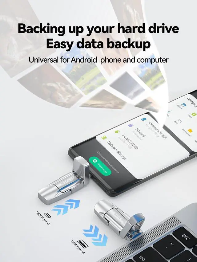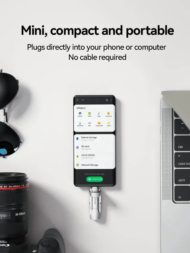 No more worrying about phone storage issues! ^^ Wide Compatibility and Easy to UseUniversal for iPhone 15 series, iPhone16 series, Android Type-C Phone, desktop, notebook, car audio system, smart TV and More. Plug and Play, extremely simple to use. Plugs directly into your android phone or computer, no cable and software required. ^^ High-Quality Zinc Alloy CaseIt is made of high-quality zinc alloy materials and advanced chip technology, it has excellent waterproof, dust-proof, anti-drop, high temperature and anti-magnetic properties. ^^ What's in the