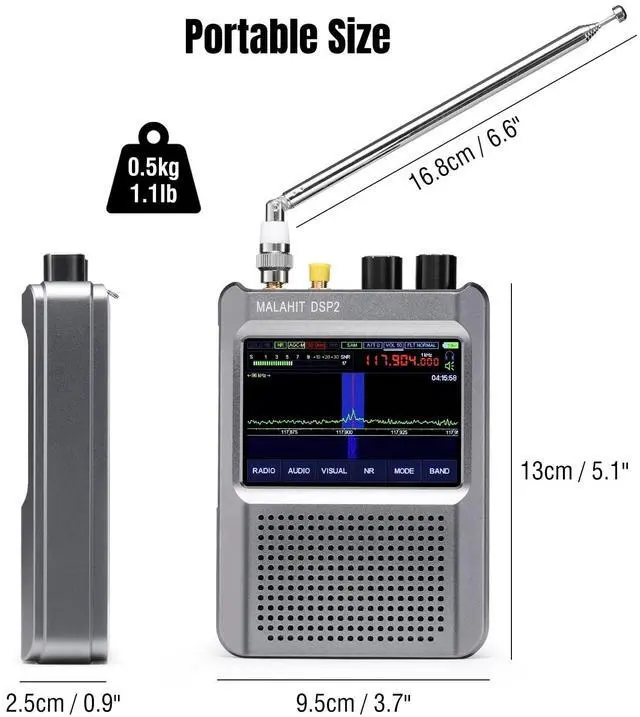 User-Friendly Interface: Navigate and control your DSP2 effortlessly with a 3.5" IPS color touchscreen offering a responsive waterfall and spectrum display. It is also equipped with functional knobs for fine volume and frequency control ^^ Long