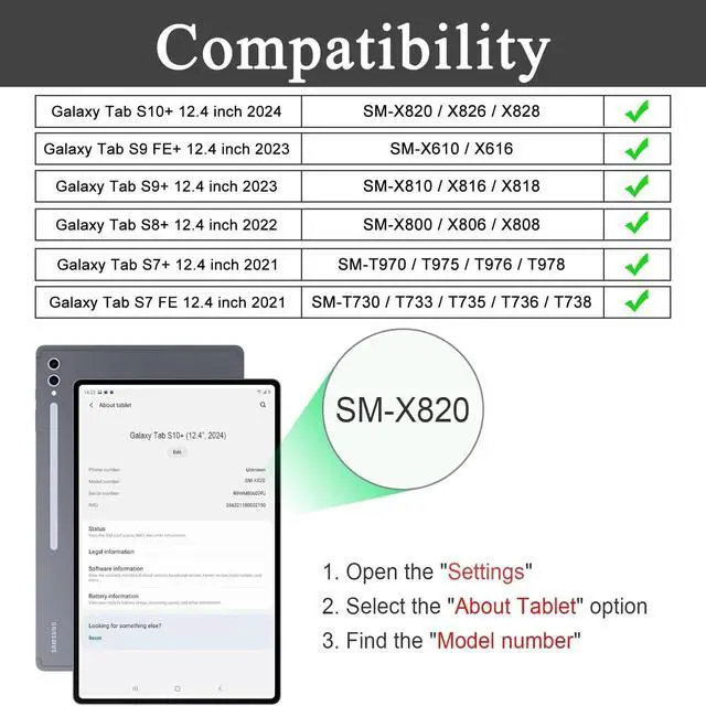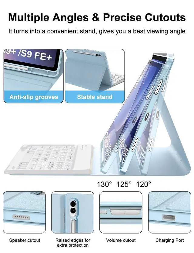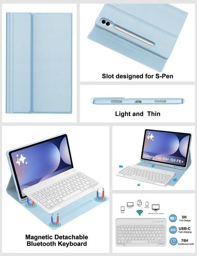 Keyboard Case for Samsung Galaxy Tab S10+/S9+/S8+/S7+, Detachable Wireless Rechargeable Bluetooth Keyboard with Multi-Angle Stand Cover with S Pen Slot