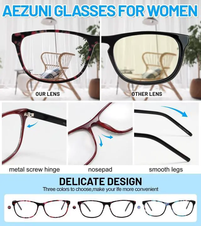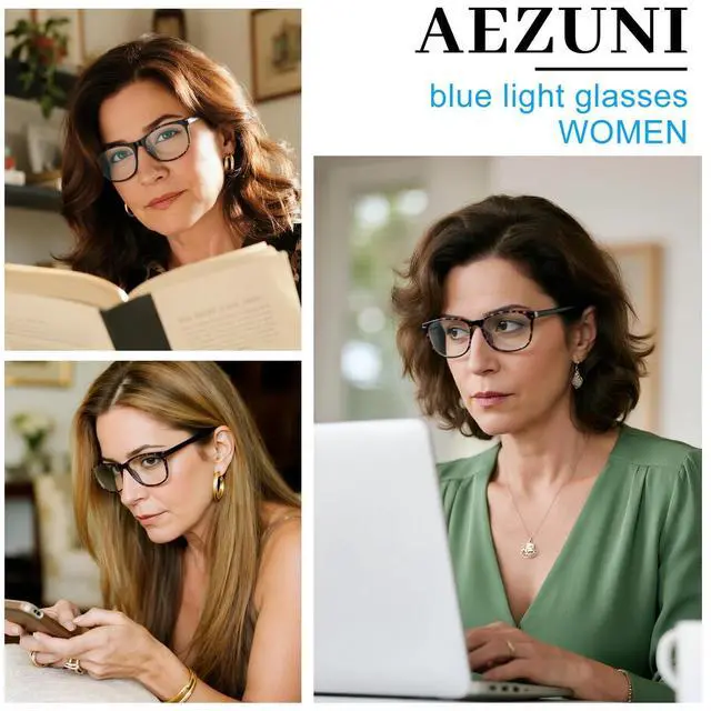 Blue Light Glasses women: AEZUNI blue light blocking glasses for women can effectively block harmful blue light that causes blurriness, eye strain, or headachesperfect for work, binge-watching shows, or scrolling social media. No more rubbing your eyes mid-day. Reduce eye fatigue, headache and help you sleep better.