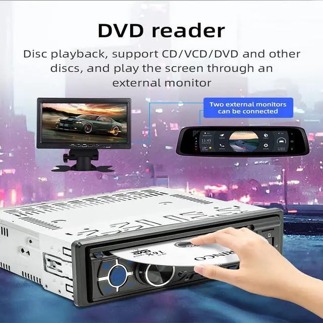 ^^ Disc playback: supports playing CD/VCD/DVD and other discs, and plays the picture through an external monitor.