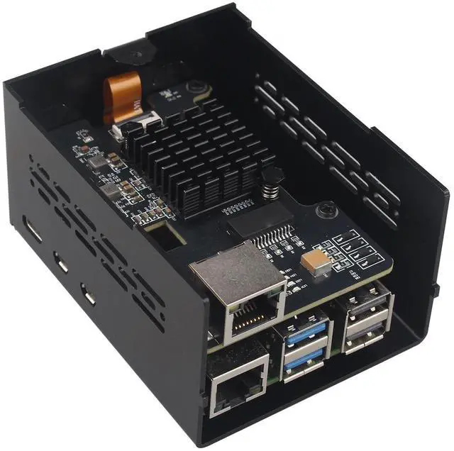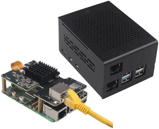Through the RTL8126 chip to achieve the expansion of 5Gbps Ethernet. Comes with aluminum alloy heatsink for better heat dissipation effect and more stable operation performance. ^^ After power on, the board can be automatically recognised as eth1 without installing driver under Raspberry Pi official OS system. When you use OpenWrt, you need to compile the RTL8126 driver into the firmware. ^^ The enclosure is specifically designed for HAT expansion boards with Ethernet Port. It is made of lightweight and durable aluminum alloy material, which can offer excellent protection and heat dissipation for the Raspberry Pi 5 board and expansion board.