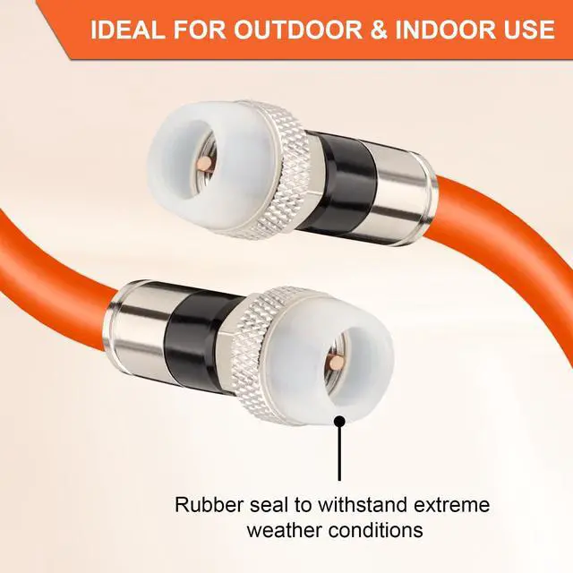 WIDE APPLICATIONS - This 75ohm rg6 coaxial cable is built for indoor or outdoor use, it is widely used for various applications that include Satellite installations, ISP Internet Cable, video security, video transmission and cellular signals booster, etc. ^^ DEPENDABLE CONNECTION -- MOOKEERF rg6 cable and the attached f-type connectors are all top-notch. High quality connectors will not pull off, break and lose signal. The cable features a UV resistant PVC jacket and the rg6 connector equipped with weatherproof rubber boot, which is perfect for both indoor and outdoor use, even works great in extreme weather conditions.