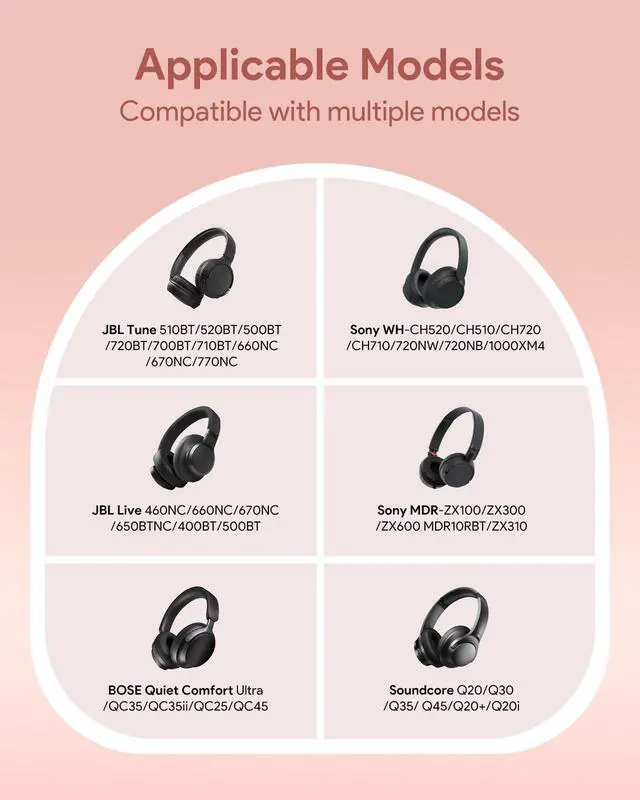 Wide Compatibility: Compatible with most over ear headphones including JBL Tune/JBL Live/ Sony WH-CH/Sony MDR-ZX/Bose Q/ Soundcore Q etc A range of models.