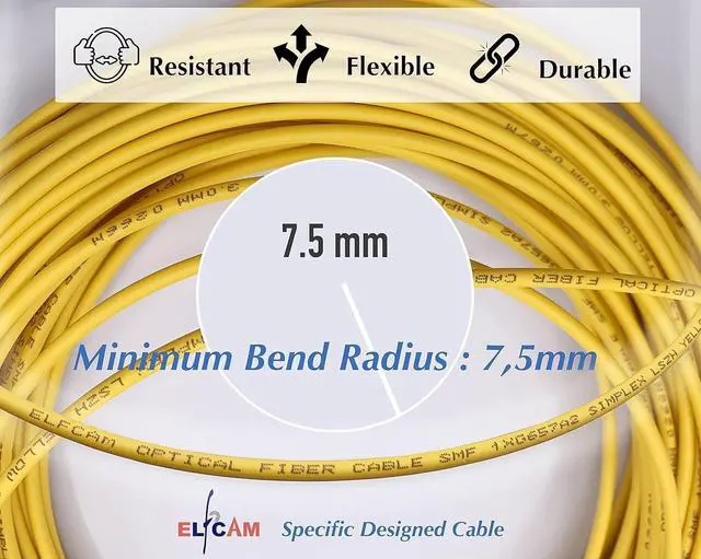 Elfcam - 30m/98.4ft Fiber Optic Cable SCA to LCA Singlemode Simplex, 9/125m LSZH Optical Patchcord Yellow 30 Meter