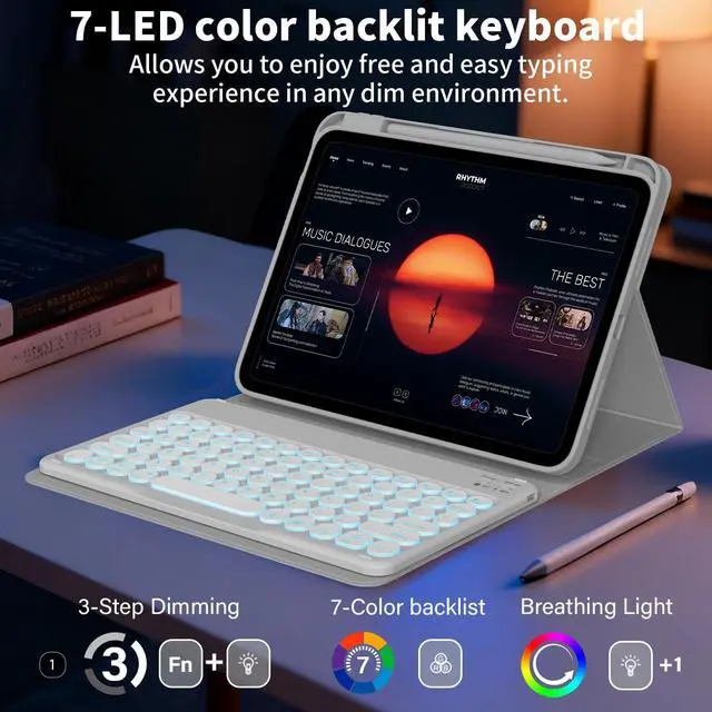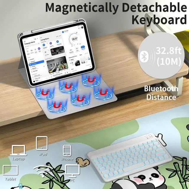 Model Number: A2316/A2324/A2325/A2072. NOT compatible with any other iPad models. Please check the back bottom of your iPad to find the model number before placing order ^^ Magnetic Detachable Bluetooth KeyboardThis iPad air 11-inch M4/M3/M2 (2026/2025/2024) with Keyboard Case comes with a magnetic detachable lightweight Bluetooth keyboard. The iPad air 10.9 inch (2022/2020) wireless keyboard pairs quickly with your tablet via a BT connection and attaches securely to the case via magnetism, instantly turning your tablet into a portable laptop, perfect for working, typing, editing, or watching videos, dramatically increasing the productivity of your iPad ^^ Magic Detachable KeyboardFor iPad Air 8th/7th/6th 11"/Air 5th/4th 11/ 10.9 inch Keyboard case is magnetic and keyboard can be strongly attached to the case or detach completely. When you do not need the keyboard can be stored away, easy to carry it on the go. Equipped with useful shortcut keys keyboard is easy, fast and stable to connect via BT, reconnect immediately turning it on. ^^ Multiple Viewing AngleThere are designs inisde of the case provides the you would stand angle, so you can change where the tablet is on the case and adjust the screen angle this way for drawing or writing on, do more computerig, suitable for home, office or school use.