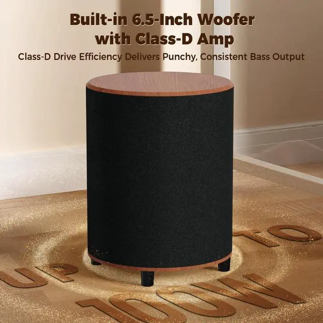 DSP & Class-D Amp-Powered 6.5 -Inch Subwoofer Advanced DSP and a Class-D amplifier team up to drive the 6.5 -inch woofer, delivering 60W RMS / 100W peak power for rich deep bass that amplifies movie, music, and gaming immersion. ^^ 40Hz Response & Low Pass Dial for Precise Bass Featuring a frequency response down to 40Hz and a low pass dial, the subwoofer focuses sharply on low frequencies, seamlessly complementing your main speakers mid and high-range output. ^^ Durable Build with Low-Distortion MDF Cabinet A low-distortion MDF cabinet and robust overall build keep this powered subwoofer long-lasting, ensuring reliable performance for years of home audio use.