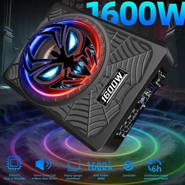 under seat subwoofers with amp 1600W Peak Built-in D-Class Amp & Upgraded Chip - Distortion-Free Bass, No External Amp Needed Equipped with a high-efficiency integrated D-Class amplifier and advanced core chip, this car subwoofer cranks out 1600W peak power for deep, punchy low frequencieseliminating the need for an extra external amp. Fine-tuned for in-car acoustics, its compatible with 99% of cars and trucks, delivering crystal-clear, powerful bass without any distortion. Whether youre bumping hip-hop, rocking to rock anthems, or savoring classical tunes, it elevates your driving soundtrack with immersive low-end impact that brings music to life.