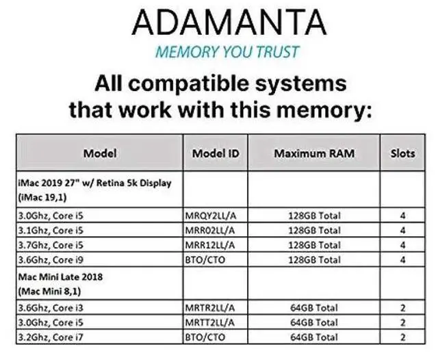 Models: MXWT2LL/A, MXWU2LL/A, MXWV2LL/A ^^ Memory Upgrade Compatible with Early 2019 27-inch iMac w/ Retina 5K