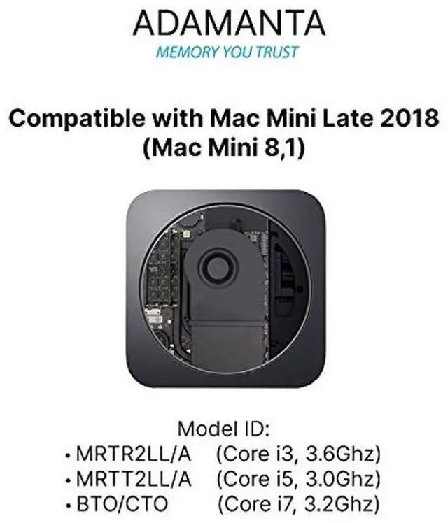 Display model ID: 19, 1 (i5 3.0GH z, i5 3.1GH z, i5 3.7GH z, i9 3.6GH z) ^^ Memory Upgrade Compatible with Late 2018 Mac Mini model