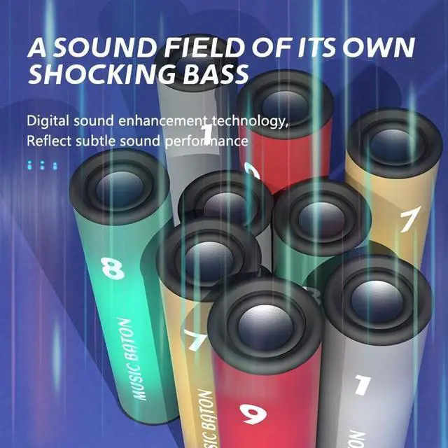 • Baton-shaped Design, Trendy & Eye-catching Featuring a unique cylindrical baton appearance with 4 personalized color options: colorful gradient, vibrant red, pure white and more. The surface is printed with a digital number design, serving as both a speaker and a fashion accessory. It will make you the center of attention whether cycling, night running or camping.