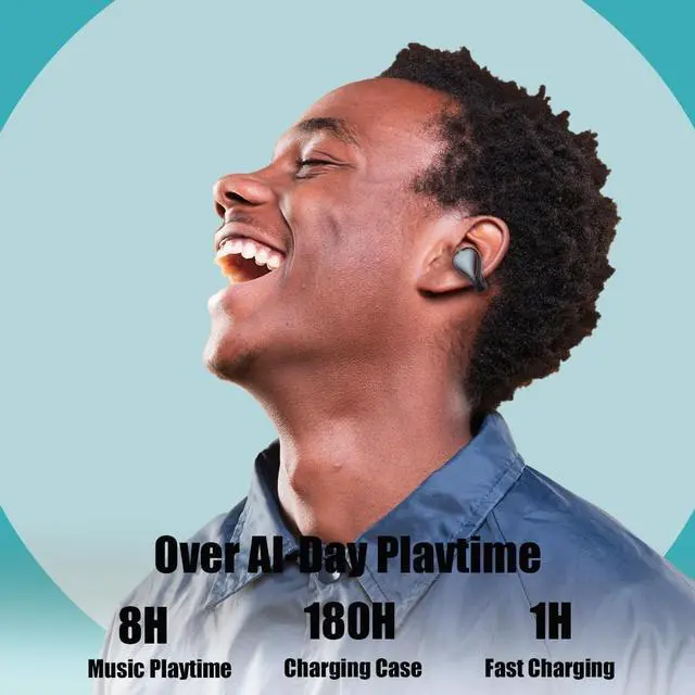 ^^ [Comfortable Wearing] Open-ear earplugs are designed with 9g mini ear clips and are non-deformable. The memory material is durable and non-deformable. They are adjustable in tightness, soft, stable and comfortable, and truly painless when worn for a long time! long battery life ^^ [Long Battery Life] Open-ear headphones have 8 hours of playback time, 1 hour of fast charging, 56 hours of use with the rotatable wireless charging box, 90 days of standby time, worry-free charging, IPX7 daily dustproof and waterproof, and earbuds are enough for You can exercise for a long time without worrying about sweating, allowing you to enjoy selfless exercise anytime and anywhere.