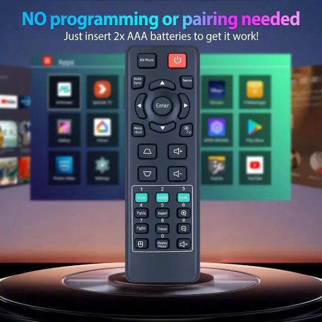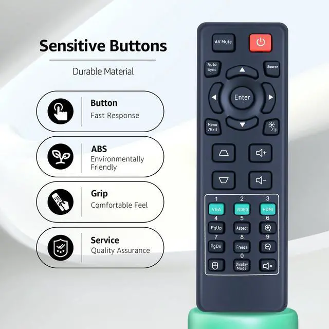Compatible Models - Compatible with ViewSonic Projector LS710HD LS740HD LS740W PA700S PA700W PA700X PS502W PS502X ^^ Out of Box - Without any programming or paired and easy to use, Just install 2pcs AAA batteries (not included) and it's ready to use ^^ Perfect Replacement - This product is a replacement for the OEM projector remote control and is installed with the same button layout as the original remote control, so you only need to make sure that the old remote control is the same as shown in the main picture, then you will be able to use all the functions that come with it ^^ High Performance - Engineered with high-quality ABS material and a new-gen smart chip, delivers instant button response and reliable 8m/26ft range coverage.