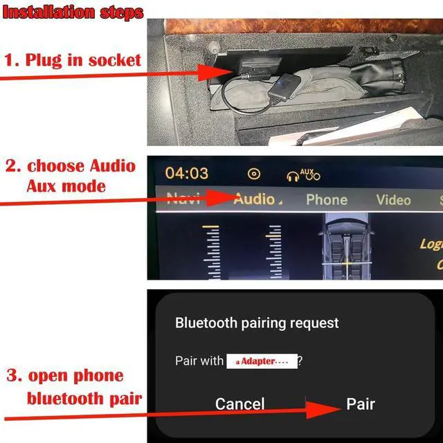 Blutooth AdapterProduct Information: Play the music on Audio AUX mode via smartphones pair the bluetooth adapterCompatible with Mercedes-Benz which model in the below listVehicles must have MMI media portsSupports Music Streaming only, does not support track artist informationAutomatically re-connects every time you enter the vehicleSupports Music streaming/USB charging optionPackage