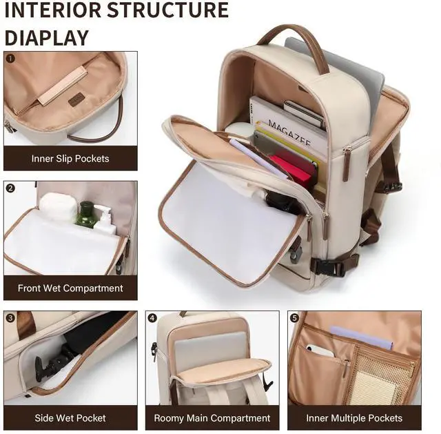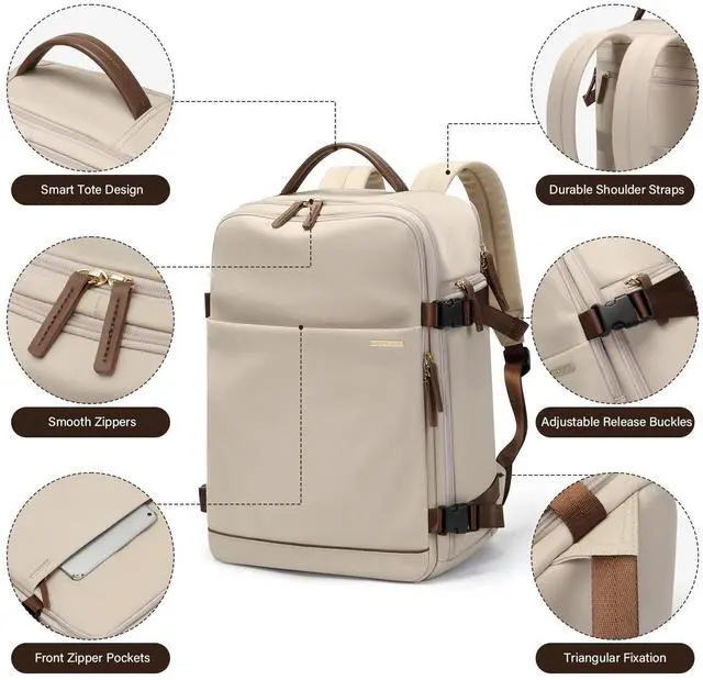 Stylish & Functional- Elevate your everyday style with our laptop backpack for women. Available in Pink, Black, and Apricot, the backpack features a sleek design and a roomy interior to fit your daily essentials. Measuring 16.5" x 6.1" x 11.8" /42 x 15.5 x 30cm, it's perfect for work, travel and college. *THIS ITEM IS NOT INTENDED FOR USE BY 12 AND UNDER. * ^^ Roomy & Organized- The backpack's large capacity features a separate laptop compartment that can fit up to a 15.6" laptop, a spacious main compartment with a zipper pocket and multiple inner pocket.