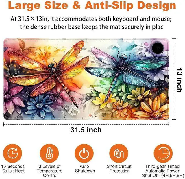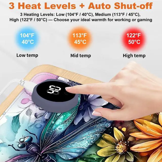 Stay warm and productive during the cold months with this large 31.5" x 13" Heated Mouse Pad. Featuring 3 adjustable heat levels (104F / 113F / 122F), it delivers consistent warmth for your hands and wrists while working or gaming. Made from premium PU leather, the surface is waterproof, easy to clean, and comfortable to the touch. Unlike USB-powered models, this desk mat uses a plug-in electric power source for faster and more stable heating. An automatic 3-hour shut-off timer ensures safety and energy efficiency. The mat is rollable and portable, making it ideal for both office and remote workspaces.