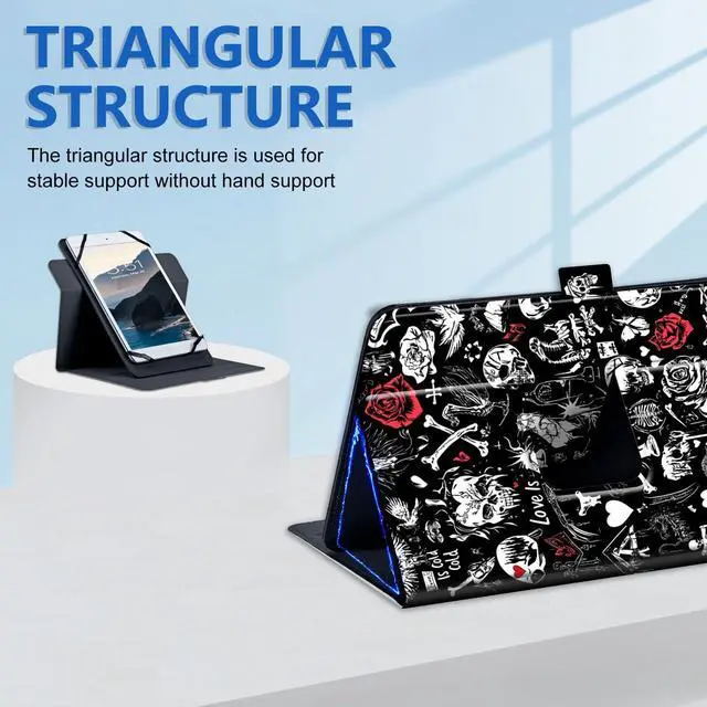 Adjustable Stand Angle Design: It has a multi-angle stand function. The innovative 360-degree stand design and multiple stand slots allow the tablet to be adjusted to different viewing angles. It is convenient for reading and watching videos. The anti-slip stripes and the elastic band can firmly hold your tablet for easy use.