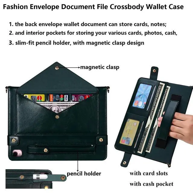 Adjustable Should Strap: Built-in hand strap, the wristband strap helps you hold or use you tablet easily and comfortably, avoiding falling due to skidding. It can be adjustable to fit the size of your hand.; the sleeve handbag case also has a detachable shoulder strap, it helps you carry your tablet conveniently when you are at work, on a trip or outdoors. ^^ with Pencil Holder & Card Slots & Cash Pockets; Envelope document design case designed with an extra stylus holder, Easily plug in/out, making the pencil always at your hand when you need it. The back shell is an envelope wallet design with card slots and cash pockets; and interior cards holder for storing your ID/credit/business cards, SD cards, photos, cash, note, ect. ^^ Raised Camera & Screen