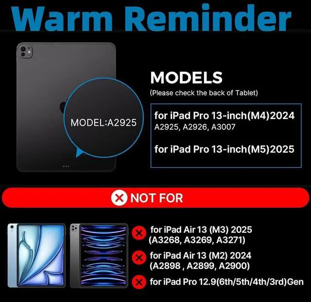 Precise Cutouts: Full access to cameras, ports, speakers, buttons, and Apple Pencil charging. Soft Macaron Colors, Stand out with a touch of modern, professional elegance that complements your style on campus or in the office. ^^ PERFECT FIT FOR iPAD PRO 13" 2024 (M4) ^^ MAGNETIC DETACH ^^ MULTI-ANGLE STAND ^^ MACARON STYLE ^^ FOR STUDENTS & WORK, Compatible with iPad Pro 13 inch (M4) Model number (on the back cover) A2925, A2926, A3007. Please check it double times before order.