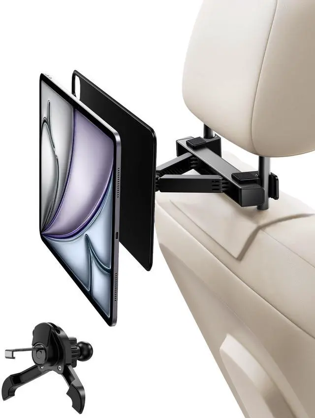 Dynamic Adjustability: Whether it is the front - row seats or the back - row seats, Adjustable Arm magnetic headrest car mount for iPad can easily adjust the hinge arm as needed to provide a closer or farther touch distance. It can be a shared screen for friends, a baby - pacifying tool for moms, and a mobile drawing board for children ^^ Fits Most Headrests & Extra Sturdy: Designed to fit narrow and wide headrests alike (works with bars 2.166. 1 inches apart), this upgraded holder extends up to 50mm for a custom fit. Its reinforced triangular arm design offers better stability than standard straight armsso your iPad stays firmly in place, even on bumpy roads. "