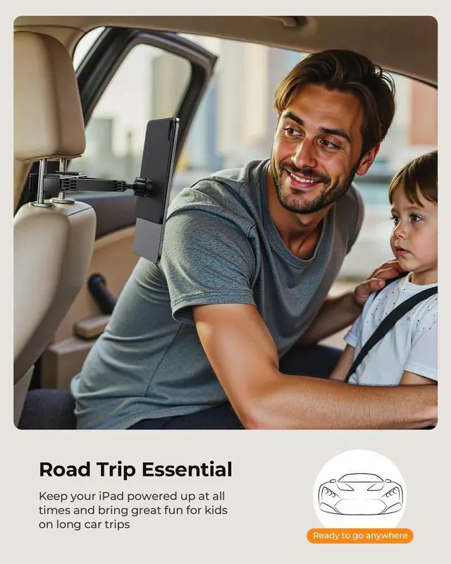 Safe Viewing: Get your iPad mounted securely in secondsno tools needed! The magnetic base attaches instantly, while the 360 rotating ball head lets you easily adjust the perfect viewing angle. Designed especially for kids, it helps prevent neck strain during long trips by holding the tablet at eye level. A must-have family-friendly car accessory! " ^^ 3-IN-1