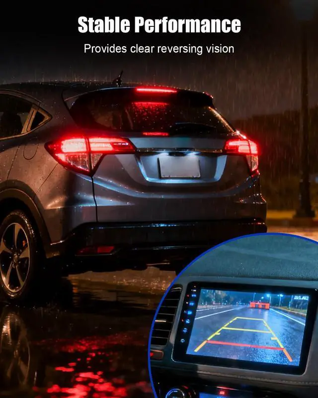 Feature: Rear view camera provides a clear view of the vehicle's blind spot, preventing scratches and collisionsRear view camera boasts a wide viewing rangeRear view camera is made of waterproof and dust prevention material, resistant to rain, snow, and dustRear view camera has low light performance and anti glare ability, which can provide clear images