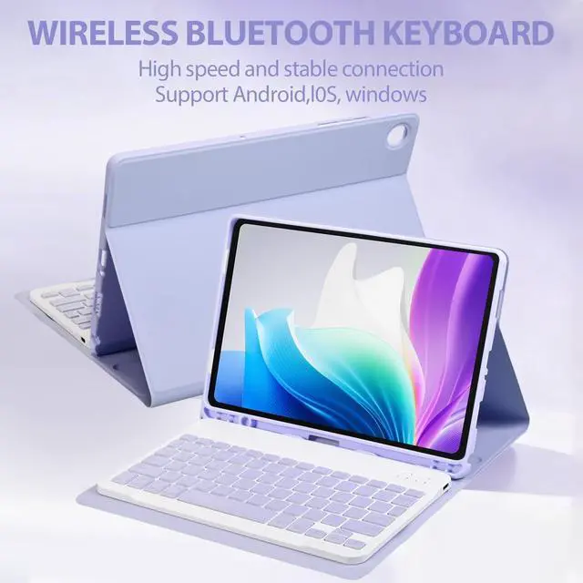 Keyboard Case for Samsung Galaxy Tab A9+ / A11+ Plus 2023/2025 11 Inch, Detachable Tablet Case with Pen Slot Detachable Folio Keyboard Cover with Mouse (Purple)