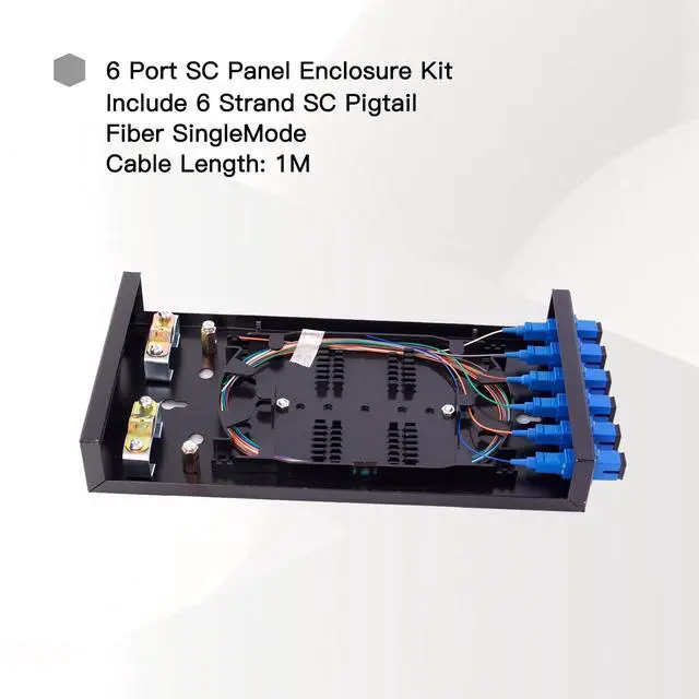 Accessory Set: - This comprehensive fiber optic SC kit includes a 6-port LGX loaded panel with all necessary accessories: 6 strands of SC singlemode pigtails and SC couplers. The optical fiber couplers are pre-configured, and the pigtail cables are neatly inserted, ensuring ease of use and organization.