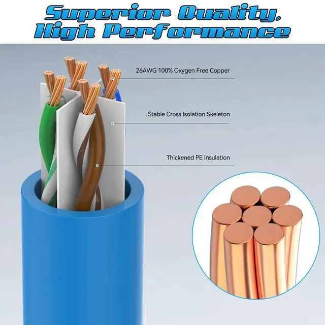 Premium Quality: Constructed with a 26AWG pure copper core, PVC jacket, UTP (unshielded twisted pair) design, and gold-plated RJ45 connectors, ensuring minimal interference and latency for optimal data transmission ^^
