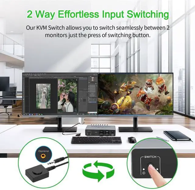 Input Switching: With Dual HDMI input ports (HDMI1 and HDMI2), seamlessly switch between multiple devices such as computers, gaming consoles, and streaming devices with just the press of a button. You can also switch the Displayport source through the extra control. ^^ High-Speed 4