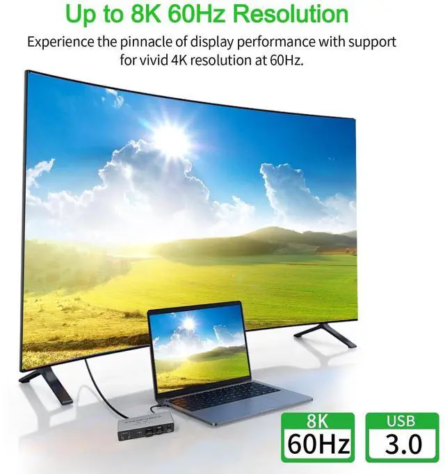 USB 3.0 Connectivity: If the USB 3.0 port on the active source (PC1 or PC2) is not connected, the USB ports on the output side will have no signal. Featuring 4 USB 3.0 output ports, effortlessly transfer data, images, and files between your connected devices. Experience blazing-fast data transfer speeds for enhanced productivity. ^^