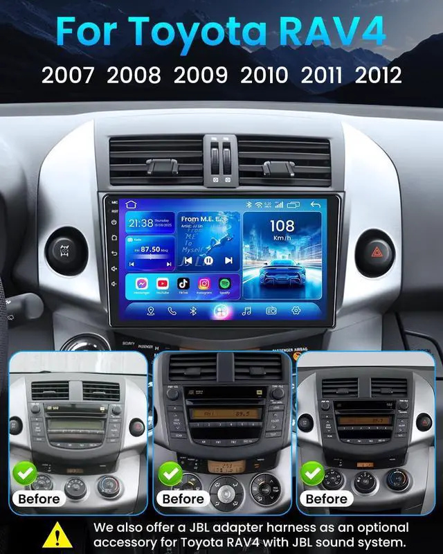 Expert Support & Easy Setup: Install with confidence! Our dedicated technical support team is ready to guide you through any step. Quick responses ensure a smooth upgrade experience from start to finish. (We also offer a JBL adapter harness as an optional accessory for Toyota RAV4 with JBL sound system. )