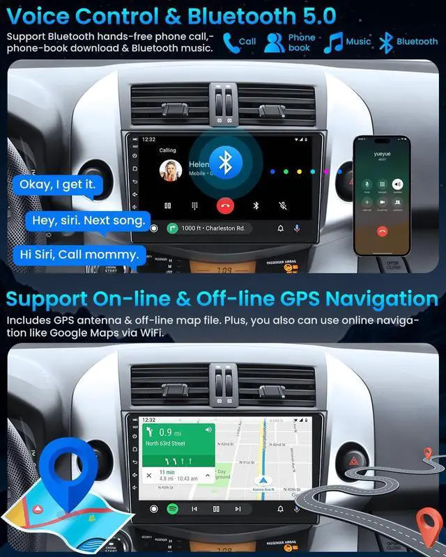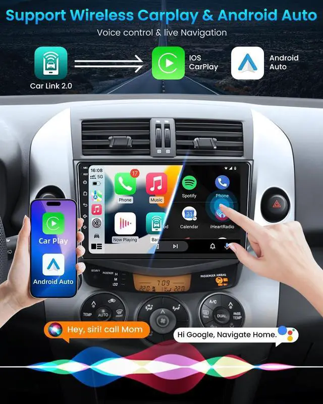 Applicable Models: Finally upgrade your factory radio! Designed specifically for Toyota RAV4 models (2007, 2008, 2009, 2010, 2011, 2012), this unit installs seamlessly like the original. No cutting, no extra parts needed just follow the clear instructions and transform your dash in minutes. ^^ Wireless Apple CarPlay & Android Auto: Ditch the cords and distractions! Seamlessly connect your iPhone or Android phone wirelessly to access maps, music, messages, and your favorite apps right on the 1280*800 resolution QLED touchscreen. Control everything with your voice (Hey Siri / Ok Google) for truly hands-free, safer driving. ^^ Bluetooth Call, Built in-EQ