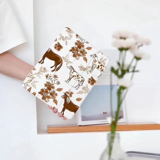BlHMCASE Cute Brown Horse Flower for iPad mini 7 A17 Pro 2024/iPad Mini 6 Case with Pencil Holder, Auto Sleep/Wake, White Leather Soft TPU Back Cover