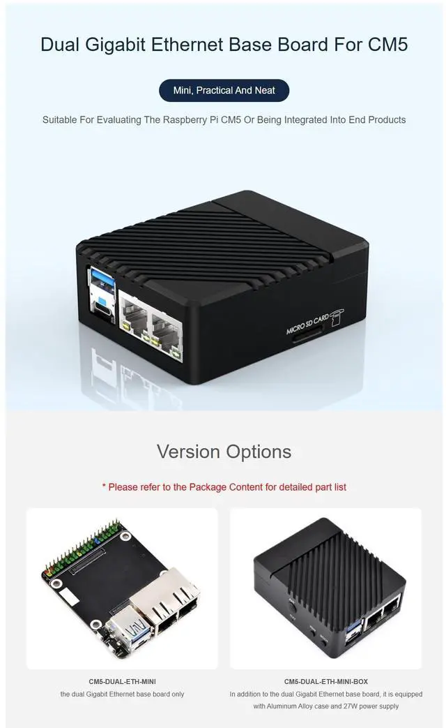 Edge AI & Multimedia: Leverage CM5s 4K video encoding and PCIe support for AI inference or digital signage. Package include1. CM5-DUAL-ETH-MINI x1