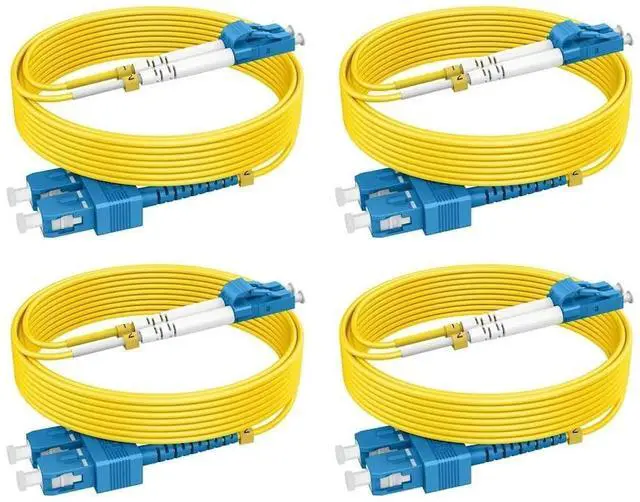 [OS2 SC-LC Single Mode Duplex Fiber Patch Cable 6ft/2m 4 PACK] RamboCables Fiber Optic Patch Cords SC to LC Single Mode Duplex constructed with SC/UPC to LC/UPC connector, 9/125m high rated fiber cladding, 1310/1550nm wavelength, environmentally friendly LSZH Jacket and 2.0 mm Cable Diameter. ^^ [Wide Application] This OS2 SC-LC Single Mode Duplex Fiber Patch Cord is ideal for connecting 10G SR, 40G BIDI SR, QSFP+, SFP+ transceivers etc, suitable for 1G/10G/40G/100G/400G Ethernet connections, saves more space for your high density cabling in data centers, cloud storage networks, server farms, computer room wiring, community network construction and any places fiber optic cables are necessary.