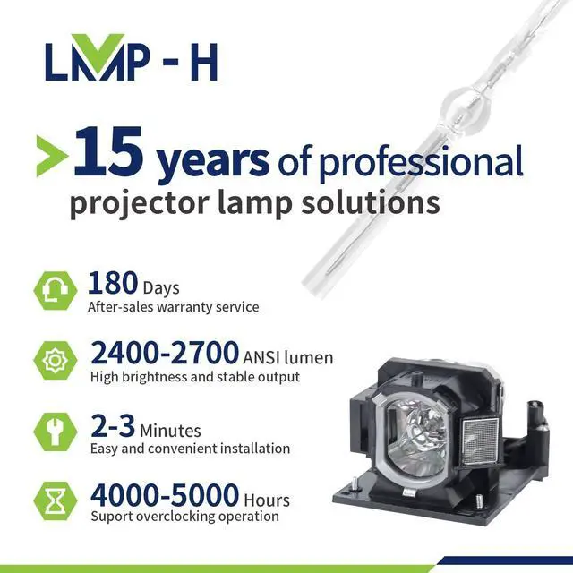 COMPATIBLE MODULES: CP-EW301N EX251N EX301N EX401 WX3030WN WX3041WN WX3530WN WX3541WN WX4041WN X2541WN X3041WN X4030WN X4041WN ^^ LMP-H projectors' bulbs are made of the highest quality materials and have the same functions as your original bulbs. They are perfectly matched and compatible with your projector ^^ All projector bulbs are equipped with enclosures instead of bare bulbs. Our bulbs feature an optimized filament design, which helps prevent the machine from overheating or experiencing abnormal temperatures, thereby protecting the bulbs and the projector ^^ When installing a new light bulb, wait for the old bulb in the projector to cool down before replacing it. And you need to be aware of the connector make sure it connected well ^^ Worry-free after-sales service, giving you great peace of mind. If you have any questions about the order, please feel free to contact our dedicated support team at any time. We will be happy to answer them for you promptly