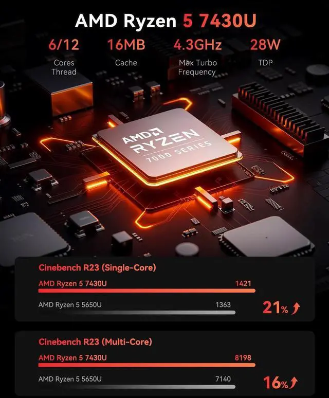 Powerful Mini Gaming PC Performance: KAMRUI E3B Mini PC is equipped with an AMD Ryzen 5 7430U processor (6 cores/12 threads, up to 4.3GH z). Built on the Zen 3 architecture with 16MB L3 cache and a 28W TDP, it effortlessly handles heavy workloads, multitasking, and entertainment, delivering a blazing-fast computing experience that never holds you back ^^ Triple 4K