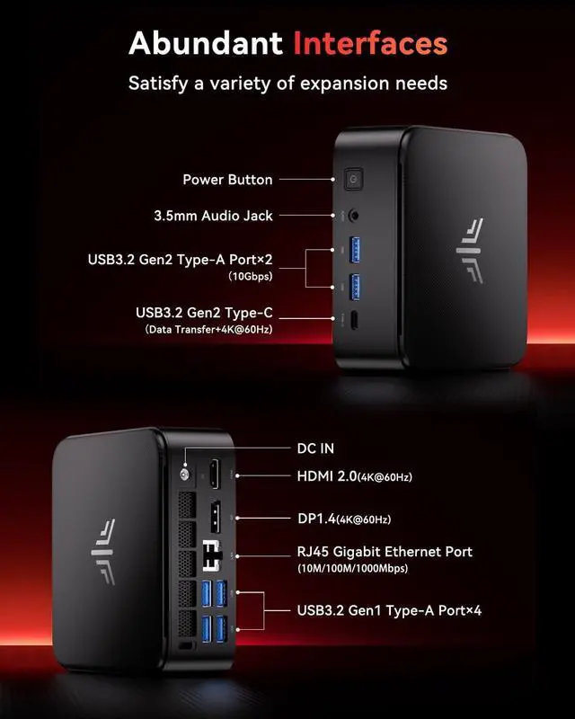 Advanced Cooling & Silent Operation: Designed with a 2000+RPM fan and intelligent thermal management, this mini PC operates whisper-quiet even during extended gaming sessions or intensive workloads. Noise-reduction technology ensures distraction-free focus ^^