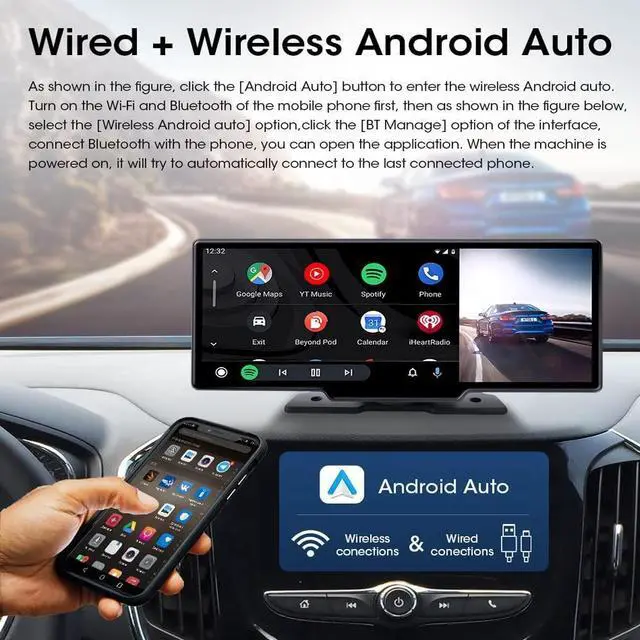 Bluetooth Connectivity: Stream audio directly from your hand-held bluetooth enabled device like iPhone, Androids, Smartphones, iPad, Tablets, etc. It also has a built-in microphone so you can answer/make calls and be hands-free without distractions. ^^ Wireless Apple CarPlay & Android Auto: Connect your phone to the radio via Bluetooth for wireless Apple CarPlay and Android Auto. You can access the music, navigation, messaging and other functions of your phone while safe driving. It also support to control the radio via Siri or Google Assistant.