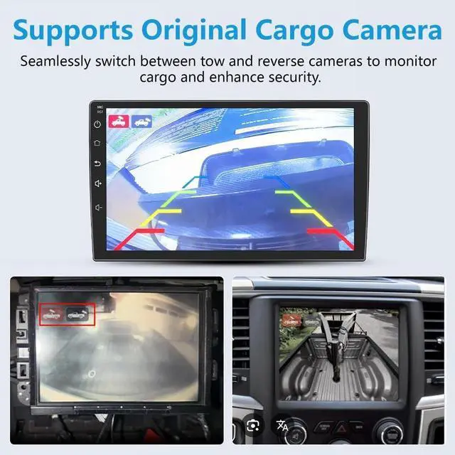 Cargo Camera: Compatible with the vehicle's rear camera and factory cargo camera. Easily monitor cargo status. Seamlessly switch between two camera views for a smooth and safe journey. (Applicable only to new version wiring harnesses; older versions just need a wiring harness. ) ^^ Integrated Wireless and Wired CarPlay, Android Auto, and