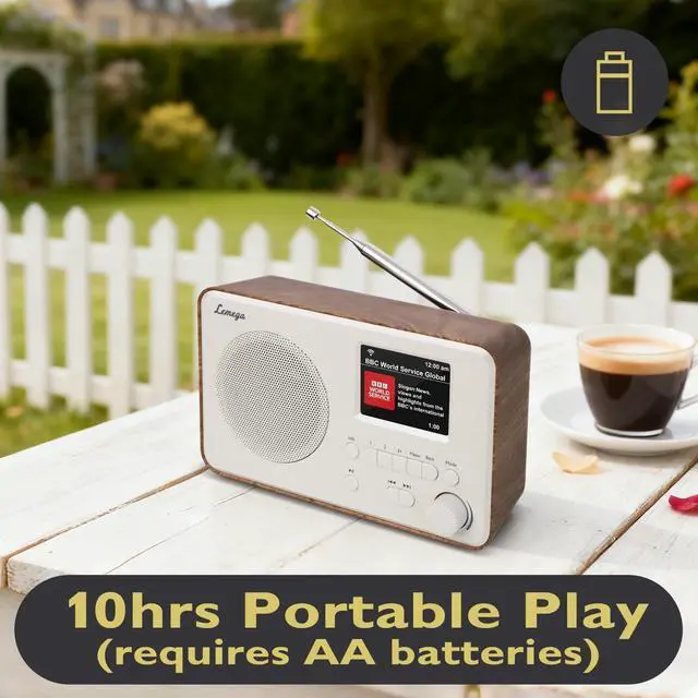The IR1S also works as a practical alarm clock radio, letting you wake to Internet Radio, FM or a buzzer. Includes snooze and sleep timer functions, making it suitable for bedside use as well as kitchens and workspaces. ^^ Mains or Battery Powered Portability Use the IR1S plugged into the mains at home or power it with AA batteries (not included) for up to 10 hours of portable listening. Easy to move around the house or into the garden, with a clear full-colour display and headphone jack for private listening. A compact, versatile Internet Radio designed for flexible everyday use.