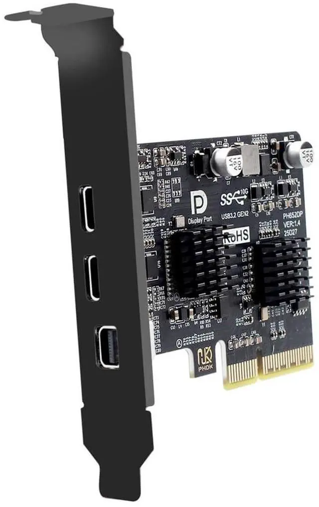 PCI-E Express 4x & Mini Displayport 1.4 Input to Dual 10Gbps USB 3.1 Type-C USB-C & 4K 60hz Output Desktop Graphics Expansion Card